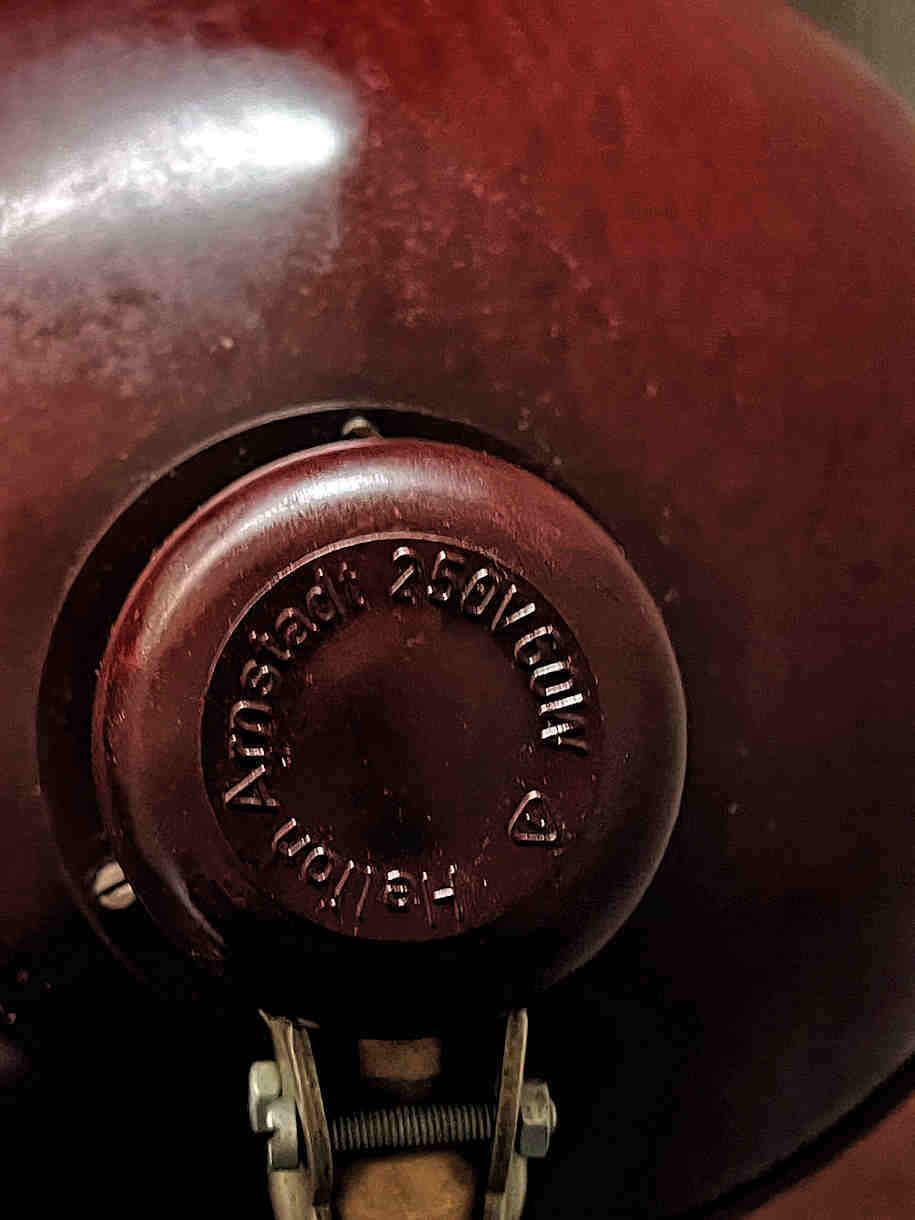 Der Fuß aus Bakelit, der Schirm aus emailliertem Stahl – jedes Detail ist auf Zweck und Beständigkeit ausgelegt.