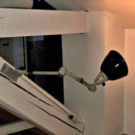 Diese Midgard Leuchten sind Anfang der 50er Jahre des letzten Jahrhunderts in der ehemaligen DDR hergestellt worden. Die ersten Entwürfe dieser Midgard Lampen mit "lenkbaren Licht" stammen von Curt Fischer aus den 20er Jahren. Diese Varianten der Midgard Leuchten sind sehr hochwertig verarbeitet, die Gelenke lassen sich in fast allen Richtungen bewegen und halten perfekt die eingestellte Position. Wie bei allen Fabriklampen und vintage Leuchten, die wir verkaufen achten wir besonders auf die Sicherheit der Objekte. Diese alten Midgard Leuchten waren mit einem zwei-adrigen Kabel verkabelt - dies entspricht den heutigen VDE-Normen nicht. Aus diesem Grund mussten wir uns zwischen Eure Sicherheit und der Beibehaltung der alten Drehfassungen entscheiden. Wir haben uns für Eure Sicherheit entschieden und diese Midgard Leuchten nach geltenden Normen verkabelt - deshalb haben diese Midgards auch neue Fassungen bekommen. Wir haben dafür einen Ein/Aus Schalter an dem neuen Kabel eingearbeitet. Diese vintage Midgard Lampen lassen sich sehr gut an der Wand befestigen (wie auf den Bildern) oder direkt an einer Tischplatte anbohren. Wir bieten Euch auch eine neue, passende Tischklemme in schwarz, weiß oder Aluminium-blank an - dies kostet zusätzliche 20,00 Euro. Abmessungen: maximale Ausladung:       102 cm (ganz ausgestreckt) Durchmesser Schirm:  ca. 16,5 cm Preis: 439,00 Euro inkl. Versand innerhalb Deutschlands (außer Inseln) Verfügbarkeit anfragen: [contact-form-7 id="60" title="Produktanfrage"]