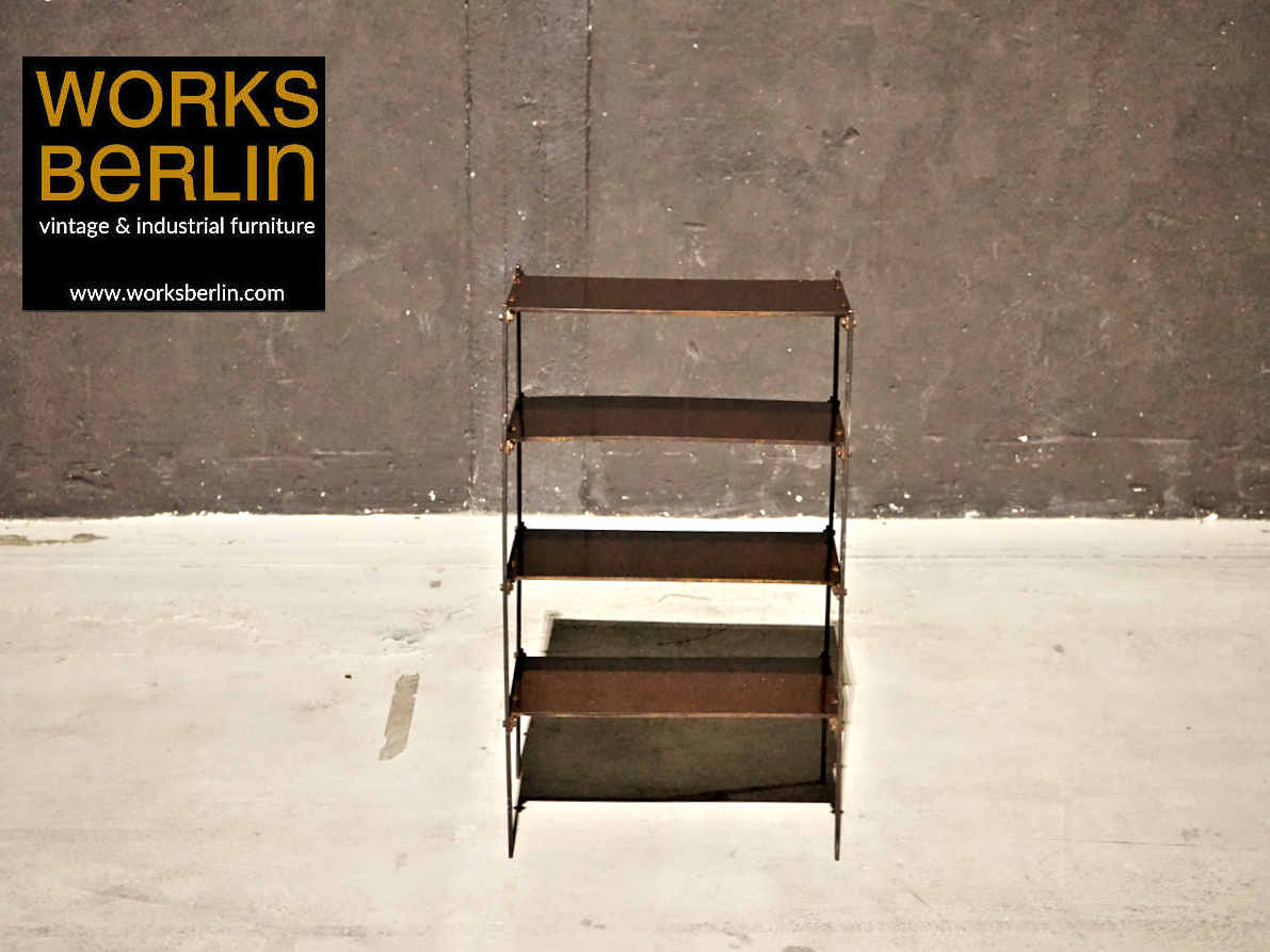 Dieses Industrial Regal aus Stahl und Bakelit wurde in den 50er Jahren hergestellt. Wir haben es aus einer sächsischen Werkstatt.
