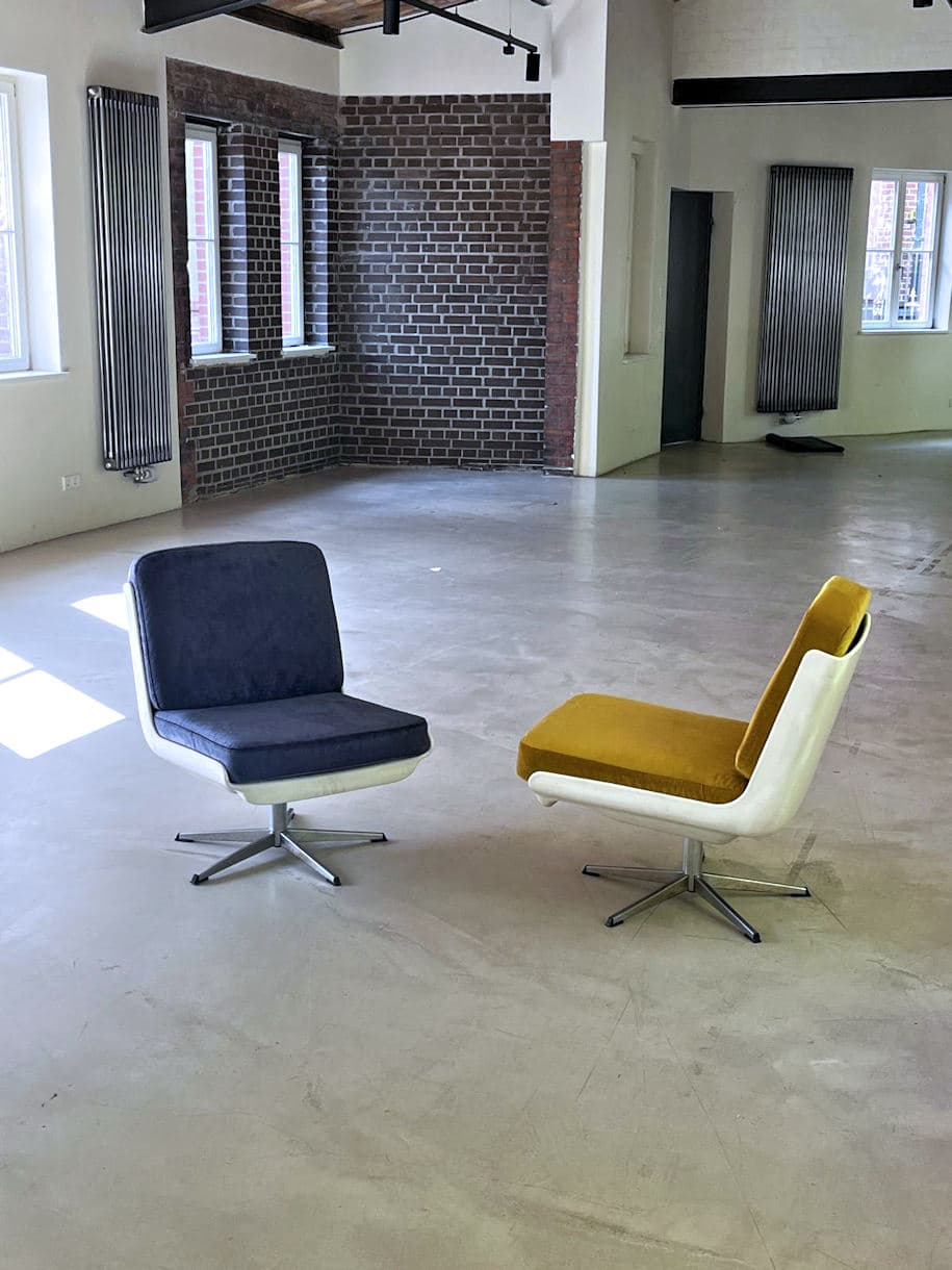 Diese Sessel wurden in der ehemaligen DDR der 70er Jahre im VEB Petrolchemisches Kombinat Schwedt hergestellt.